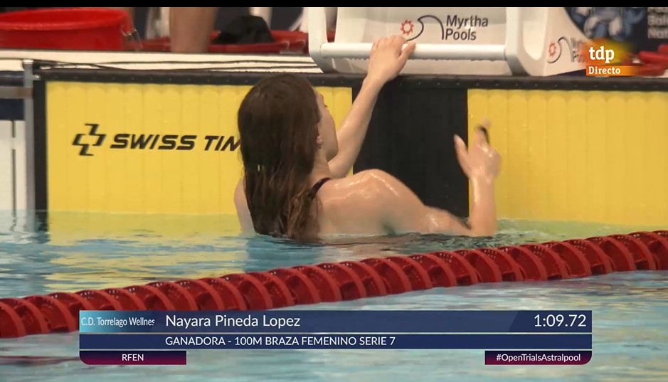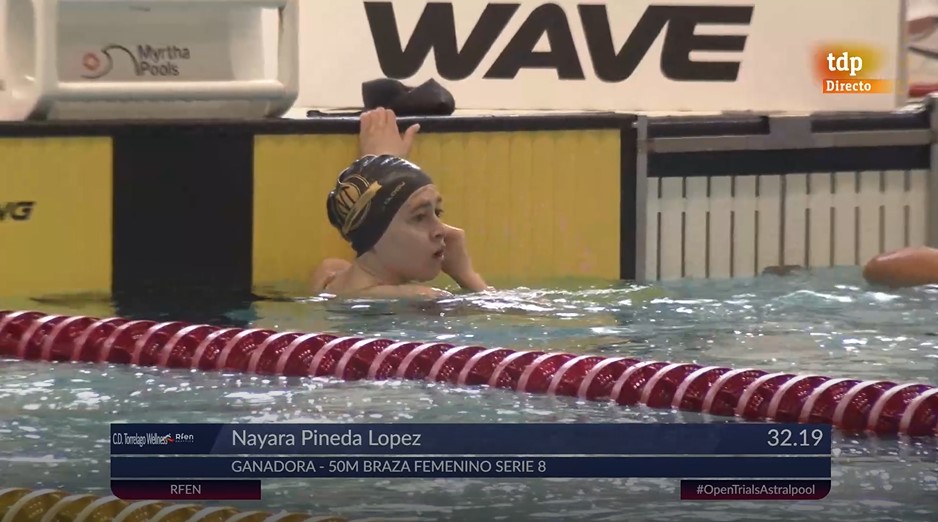 La nadadora Nayara Pineda López (2008), del C.D. Torrelago Wellness, ha obtenido 4 medallas en estos días. Ha sido campeona de España Junior y medalla de Oro en las tres pruebas que ha competido: 50m, 100m. y 200m. Braza. Así mismo, aún siendo su primer año Junior, ha conseguido el bronce absoluto en 100m. Braza y dos cuartos puestos en absolutos en 50m. Braza y 200m. Braza.